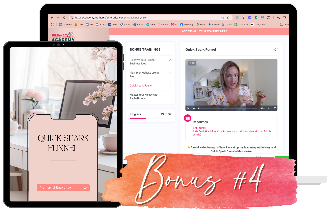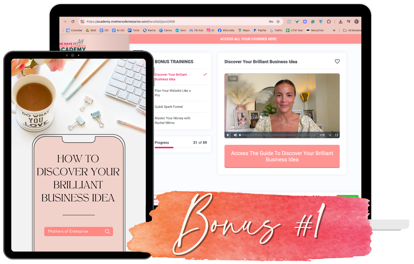 When you join The Have It All Digital Business Academy, you don’t just get the full 9-phase program, you also unlock these powerful bonuses designed to fast-track your clarity, confidence, and momentum:
